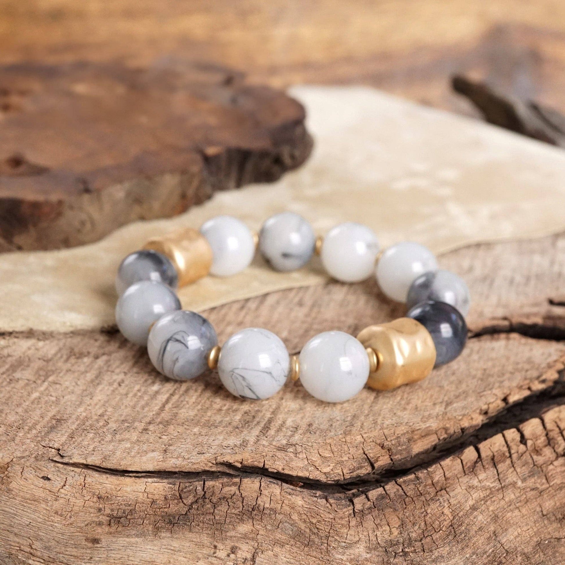 Chunky Beaded Statement Bracelets Gold Red Brown Green Gray They are perfect for layering and mix-matching, available in four stylish color tones. These bold pieces feature marbled acrylic beads and matte gold accents, making them a versatile and standout addition to any outfit.