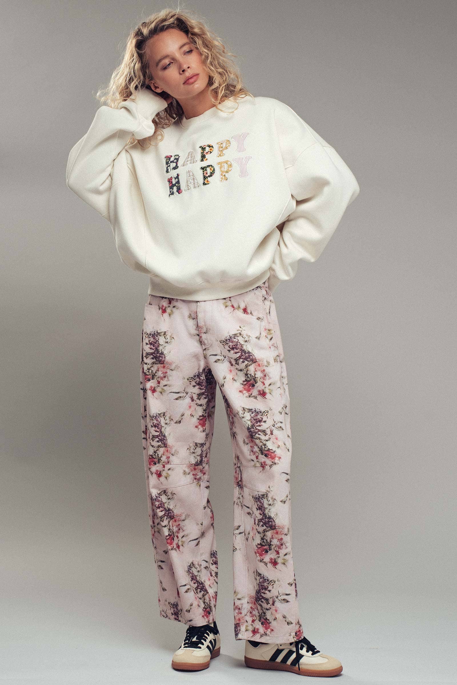Floral Watercolor Barrel Jeans