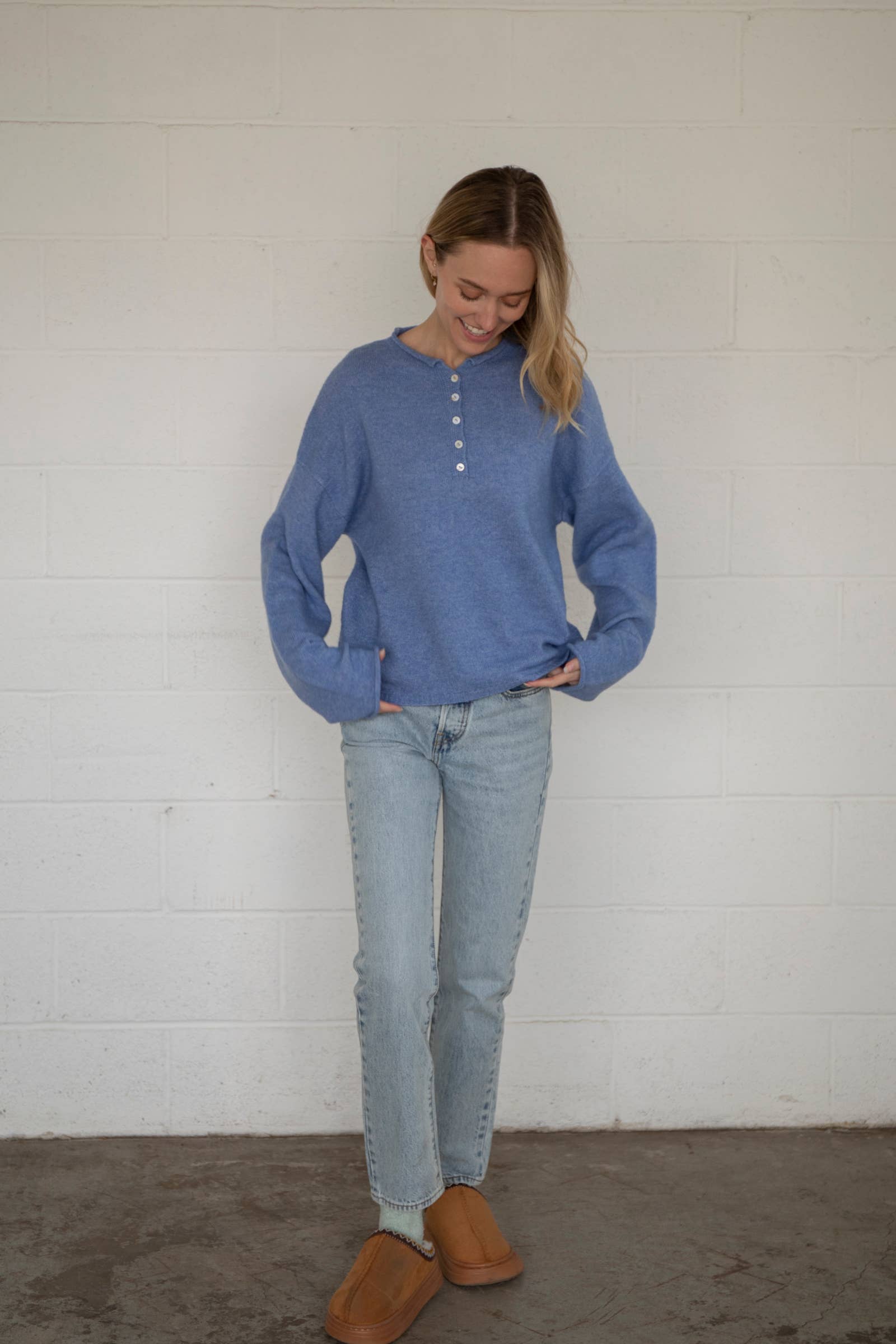 Soft and lightweight henley pullover, feels just like our Muse Cardigan. Gently textured with a relaxed fit and button neckline, it’s made for slow mornings, casual layering, and everything in between.