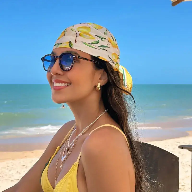 A fun light scarf perfect for your summer vacation or coastal getaway. Choose between two different styles. Made of satin polyester, scarf size is 70cm x 70cm.