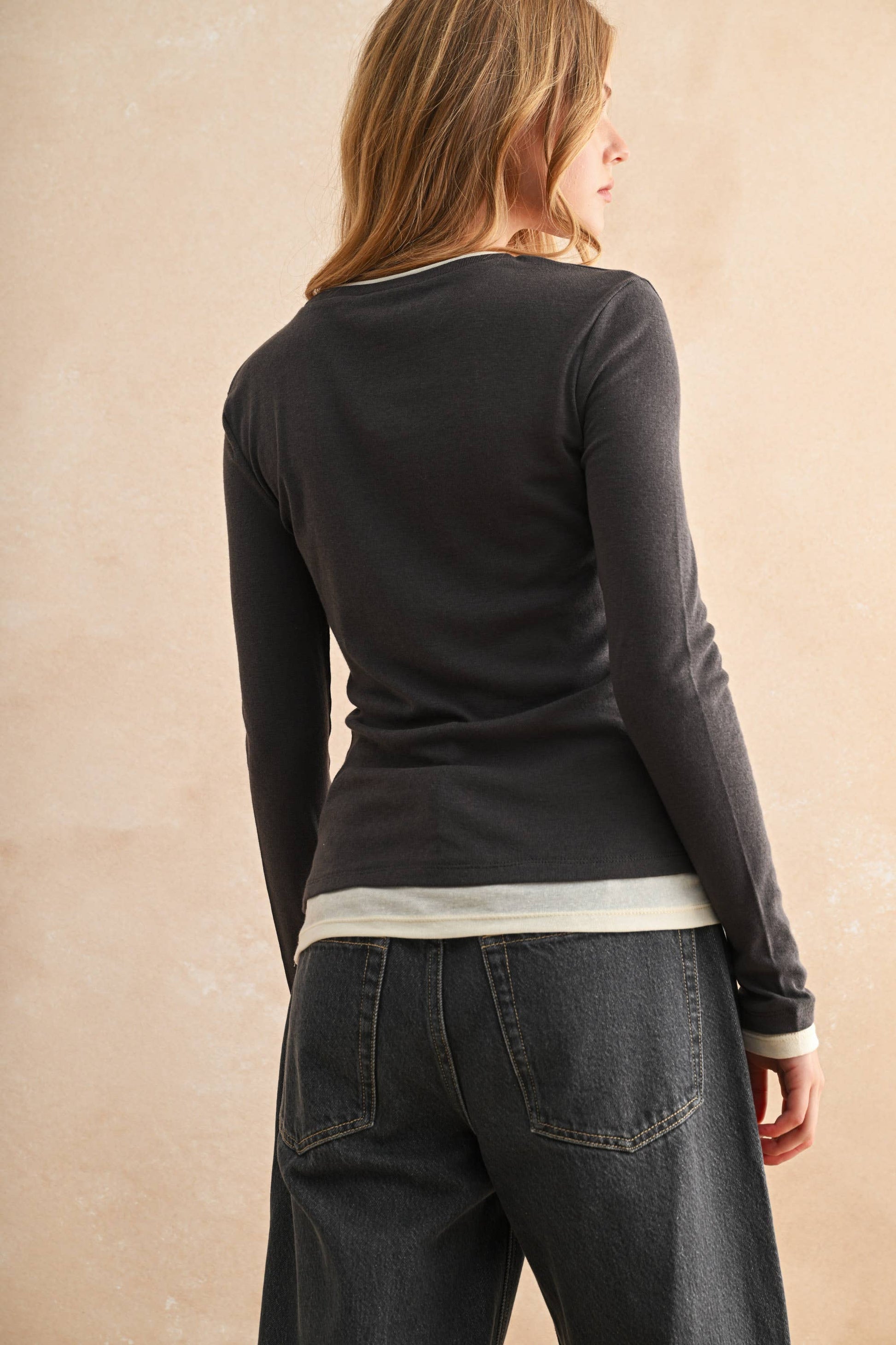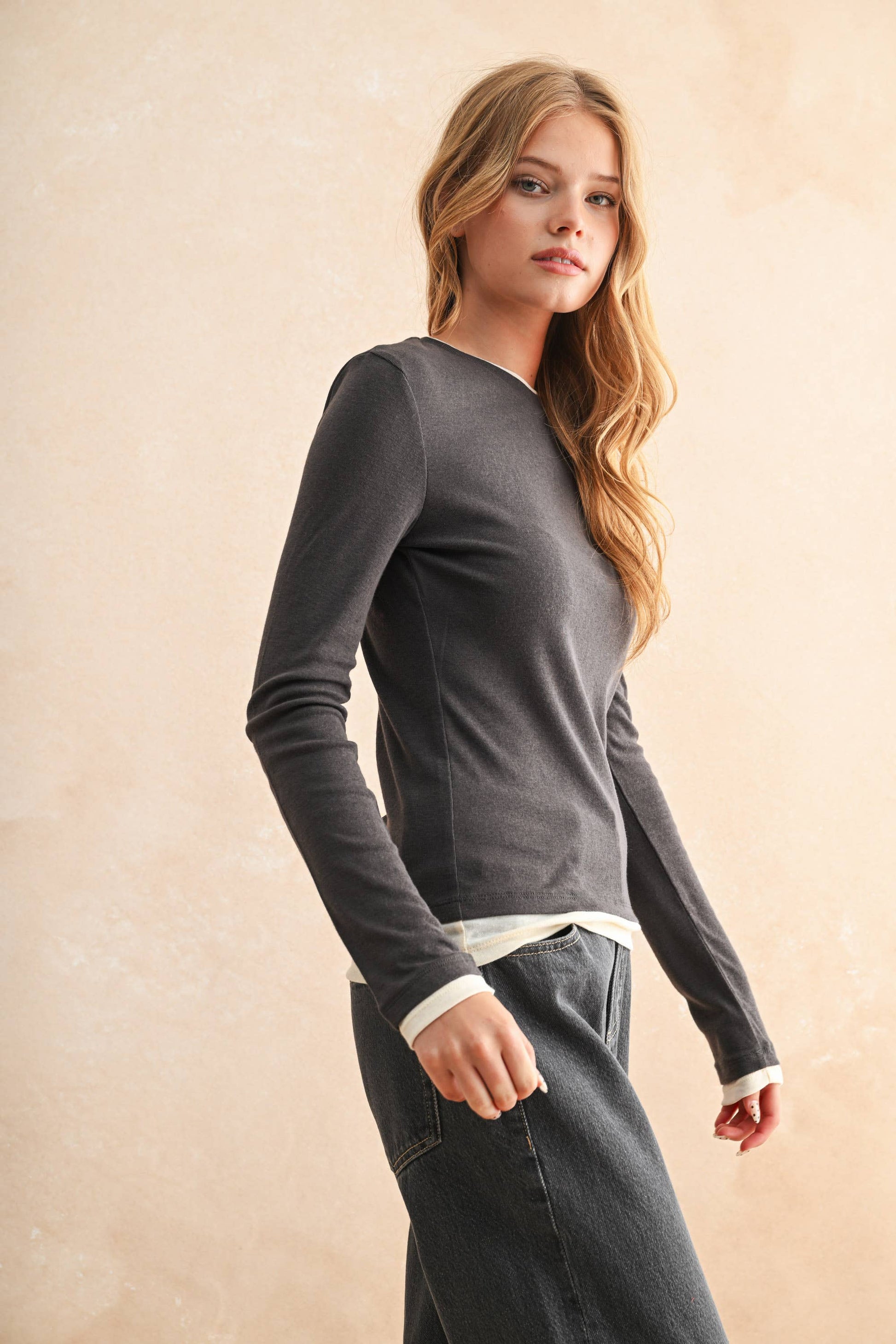 Light Weight Layered-Look Long Sleeve Tee - 2 color options