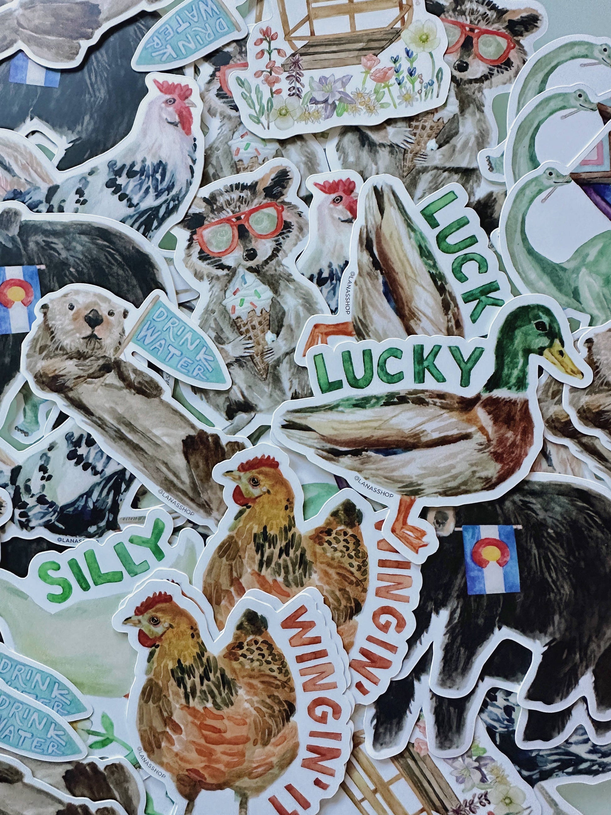Add a little joy to your everyday! For anyone out there doing their best...this chicken’s got your back. This charming sticker features Lana’s original hand-painted artwork. The Wingin' It Chicken Sticker design is ready to brighten water bottles, laptops, notebooks, phone cases, planners, and even your happy mail. Perfect for chicken owners, farm lovers, and anyone who appreciates a little feathered encouragement.